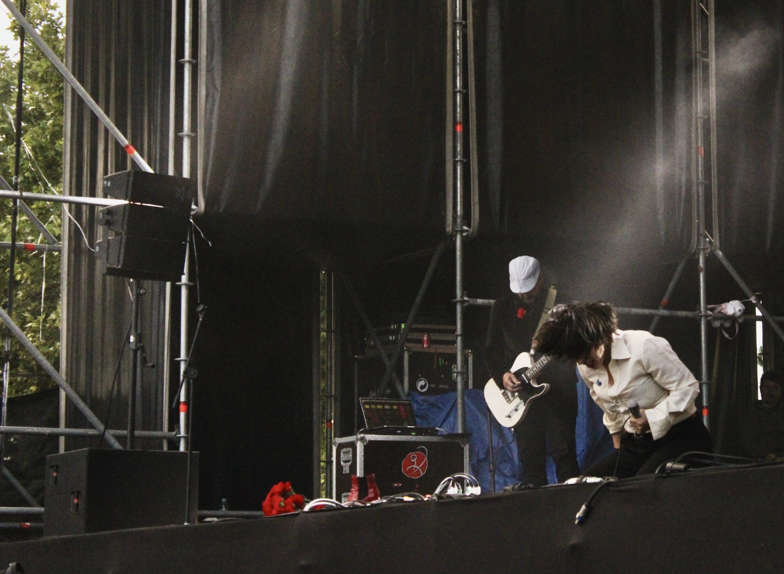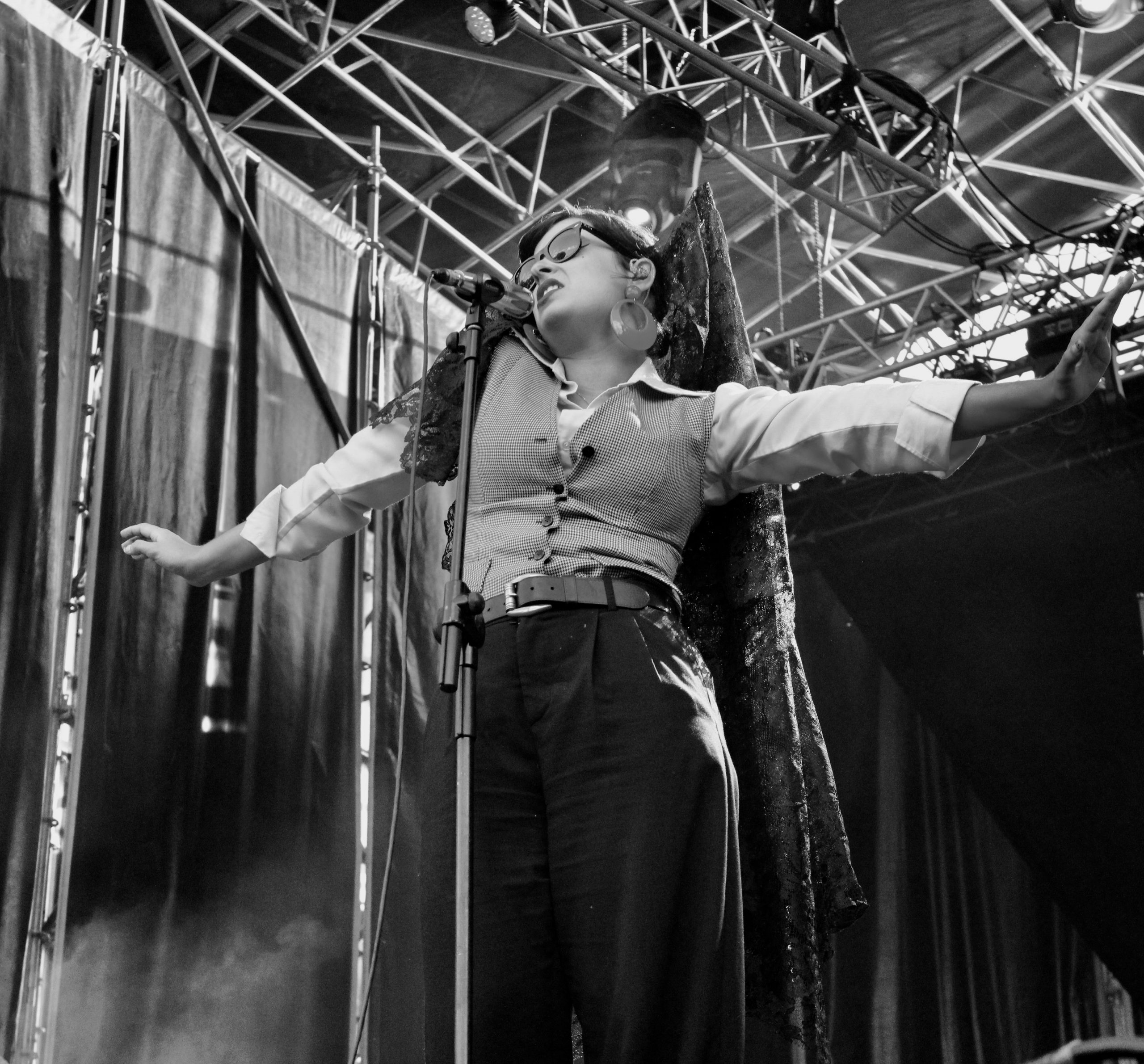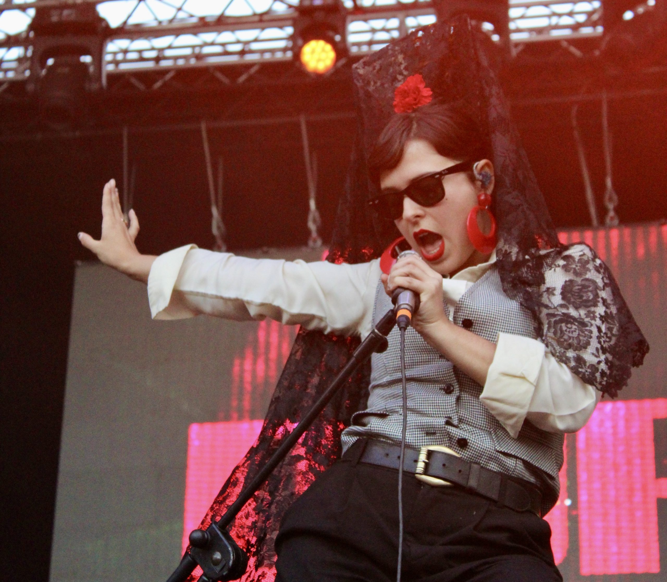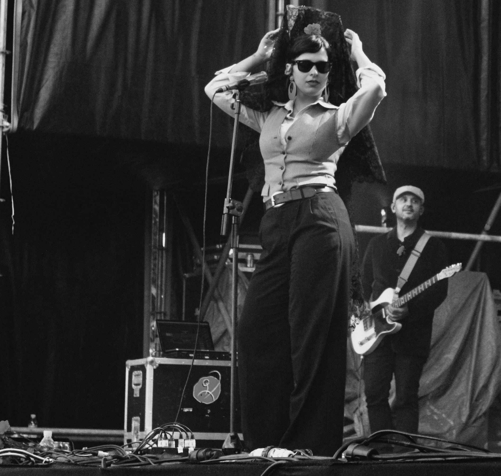 Le daba paso Héctor. Trajeado, chulapo y con un ramo de claveles que terminaría lanzando al público, presentaba el costumbrismo madrileño a modo de recital, presentaba no un concierto, sino una actuación. Presentaba un show. Presentaba a Dora. Peineta, mantilla y chaleco. Entraba Dora por la puerta grande y la gente comenzaba a corear. Al frente del escenario comienza en acústico, se une su banda y empieza todo.