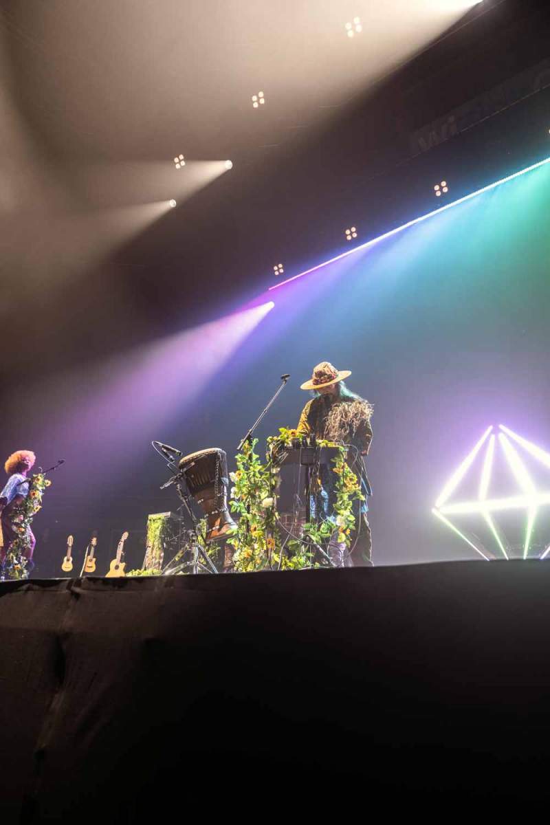 La banda hizo un recorrido por sus grandes éxitos y temas nuevos, incluyendo canciones de su último álbum, «Light + Space», lanzado en 2023. Con este disco, Crystal Fighters ha demostrado que su esencia sigue evolucionando, pero sin perder sus raíces sonoras: ritmos tribales, sintetizadores envolventes y una energía que trasciende géneros. A lo largo de la noche, sorprendieron al público con remixes de sus temas clásicos, que aportaron frescura y dieron una nueva vida a hits como ‘Follow‘, ‘Love Natural‘ y ‘I Love London‘. Esta combinación de lo familiar con lo nuevo mantuvo al público en constante movimiento, bailando y cantando de principio a fin.