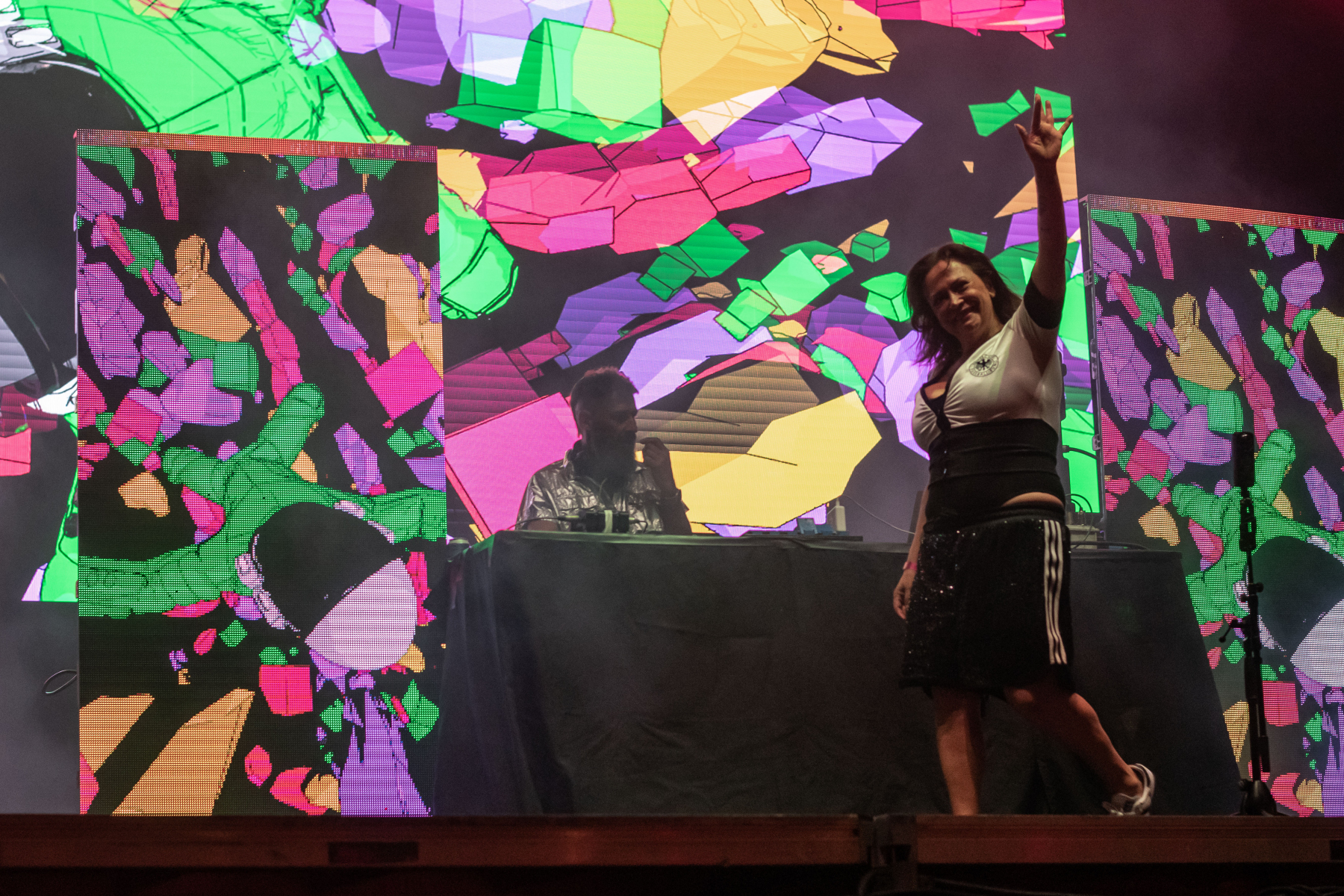 El cierre de la noche lo ofrece We Are Not DJ’s. Gracias a esta pareja, la multitud sigue aquí. Bailando con unas mezclas enérgicas y una puesta en escena más que espectacular y novedoso. Es la primera vez que proyectan algo tan ‘heavy’. Demasiada gente no puede ni irse de allí de lo a gusto que se está.