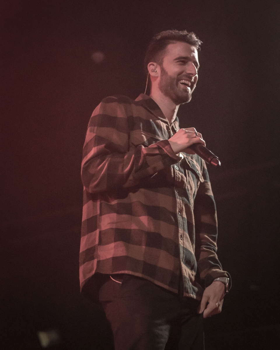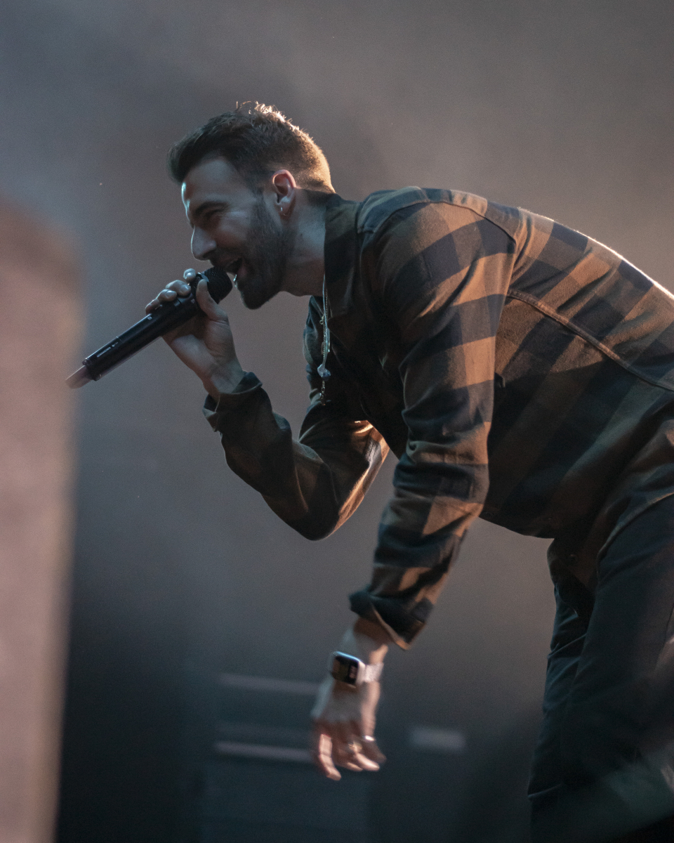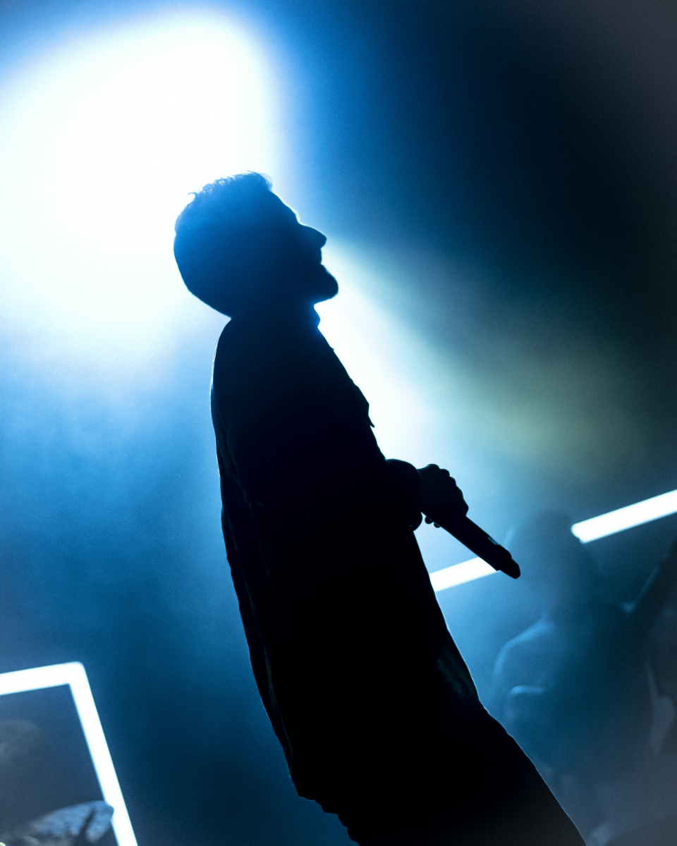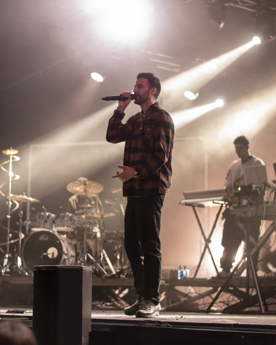 Se escucha ‘Aire’, el décimo tema del disco. El espacio se llena de luces que pintan de azul al artista y a toda su banda tras él. El artista sevillano toca un teclado al mismo tiempo que usa su voz para interpretar la obra. Luego, con ‘Tú qué ves en mí’, no puede borrar lo que está escrito, pero sí que puede invitar al público a dar besos y abrazos a la persona con la que han venido. Desde la primera fila se percibe el cariño que se dan dos grupos de amigas y algunas parejas.