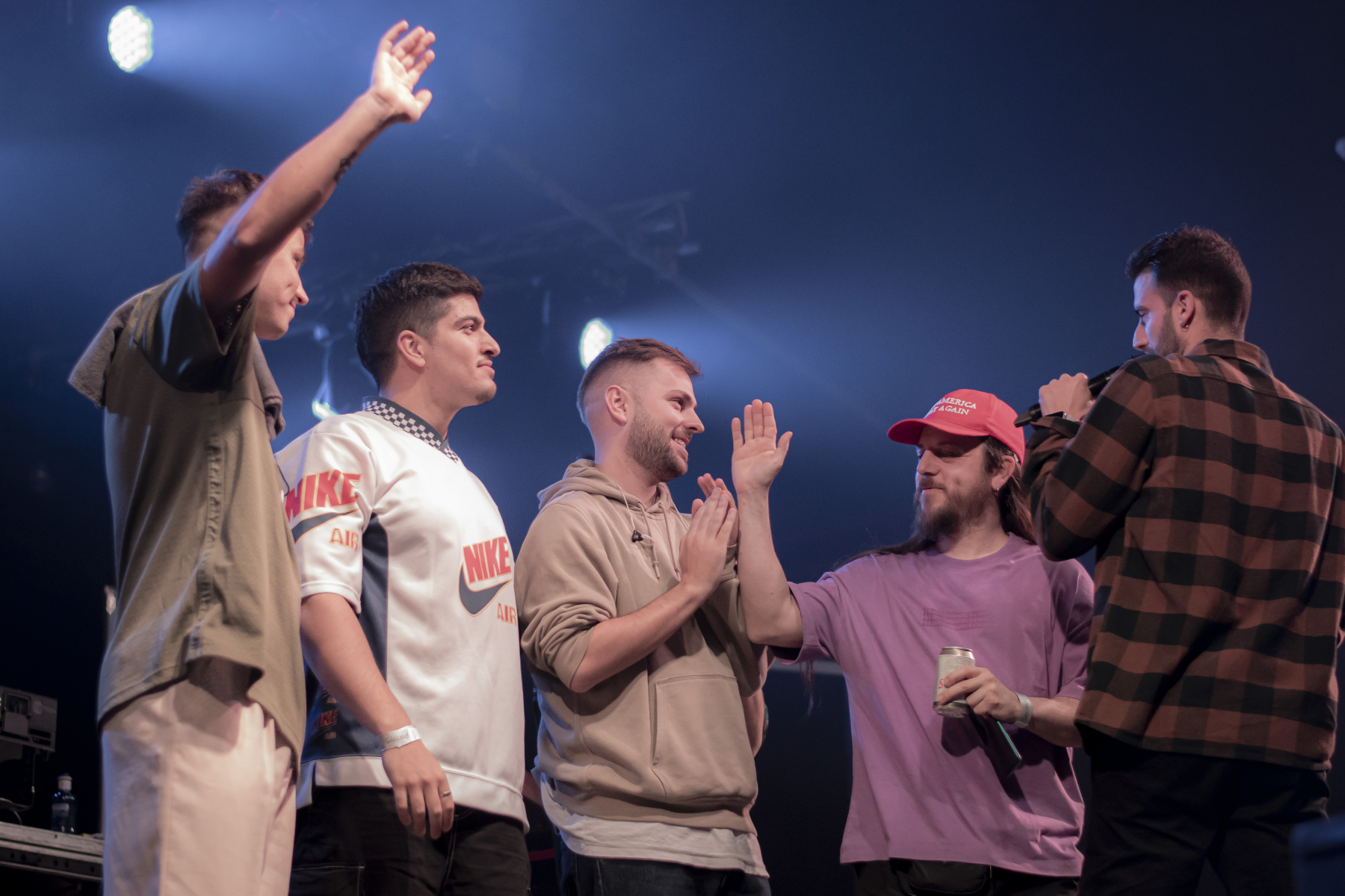‘Mira pa otro lao’, retumba en los altavoces de la París 15. En cambio, todo se para cuando el artista se percata de que está ocurriendo algo entre la gente. «¿Todo bien ahí?«, suelta, sabiendo que hay pelea. «Le ha tirado la cerveza a mi amiga«, se oye. «Discúlpate con la chavala si se la has tirado«, le ordena Juancho Marqués. «Vamos a estar de buen rollo«. Se viene ‘Internacional II’, colaboración que tiene con Sule B, para conmemorar su antiguo grupo Suite Soprano. «Soy Soprano para siempre«, termina. La audiencia no para de gritar. Da comienzo a una de Suite Soprano que está fuera del setlist, ‘Por los siglos’. Juancho brinda con una lata de cerveza en la mano hacia el público. Después la deja en la mesa de mezcla de su banda. ‘Si yo estuviera enamorao’ irrumpe pero no sin antes preguntar quién está enamorado. La sala mueve la mano y el brazo, haciendo el típico gesto del rap.