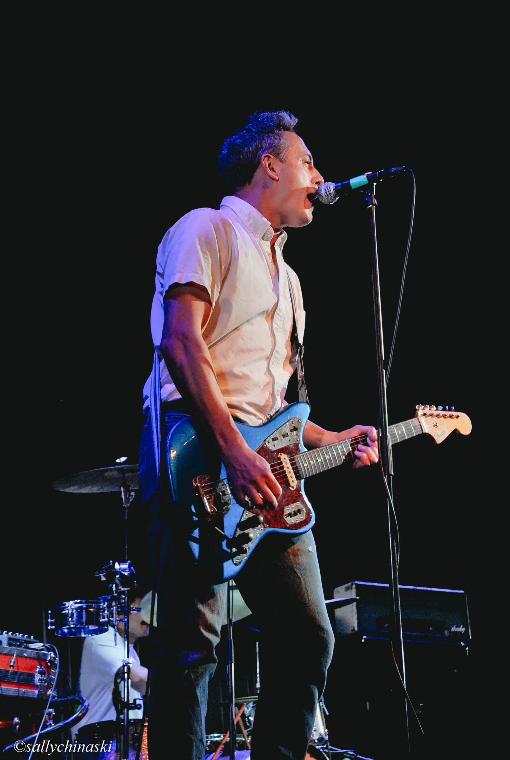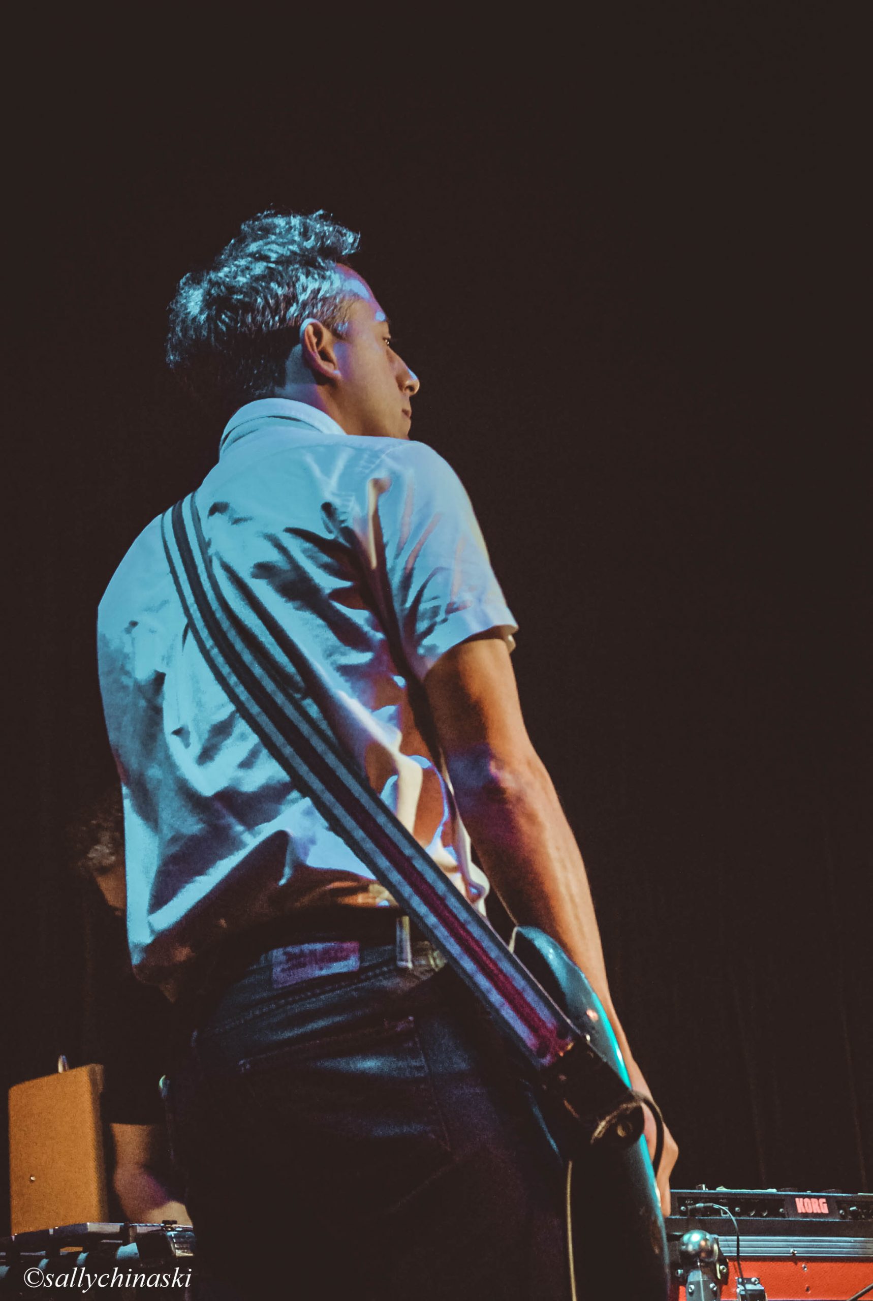 La conexión entre el público y la banda era patente. La relación bidireccional entre ambas partes es algo a lo que estamos acostumbrados a respirar en los conciertos de Nueva Vulcano y el Madrid Brillante no iba a ser una excepción. Artur pidió al técnico de luces hacer un cambio en la iluminación del teatro que permaneció durante el resto del concierto y que dio luz a la platea para que ese sentimiento de unión se realzara todavía más. Genial detalle de una banda que tiene todo apuntado, un regalo para la nostalgia. Precisamente, bajo estas premisas comenzó «Mercurio retrógrado, etc.«, con la lectura de Artur de la letra que acompañará a un próximo single a modo de epílogo que lanzarán próximamente «Ensayo sobre la nostalgia» y que sustituyó al speech inicial del tema al que no pudo faltar un «pero es que ahora tengo algo que hacer, pero me parece querida, ya sé lo que es» en el que la conexión entre banda y público vivía un intenso cruce de miradas.
