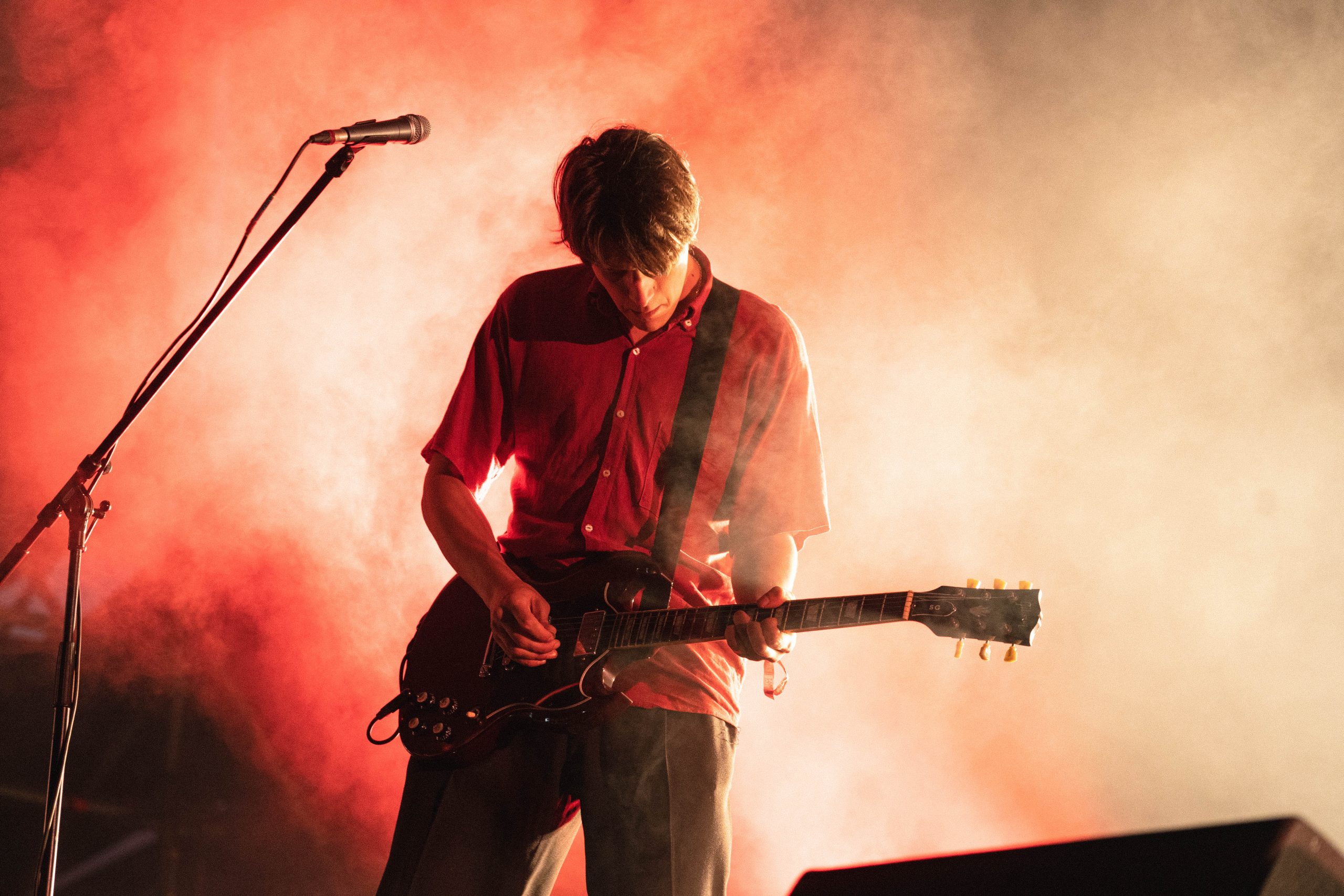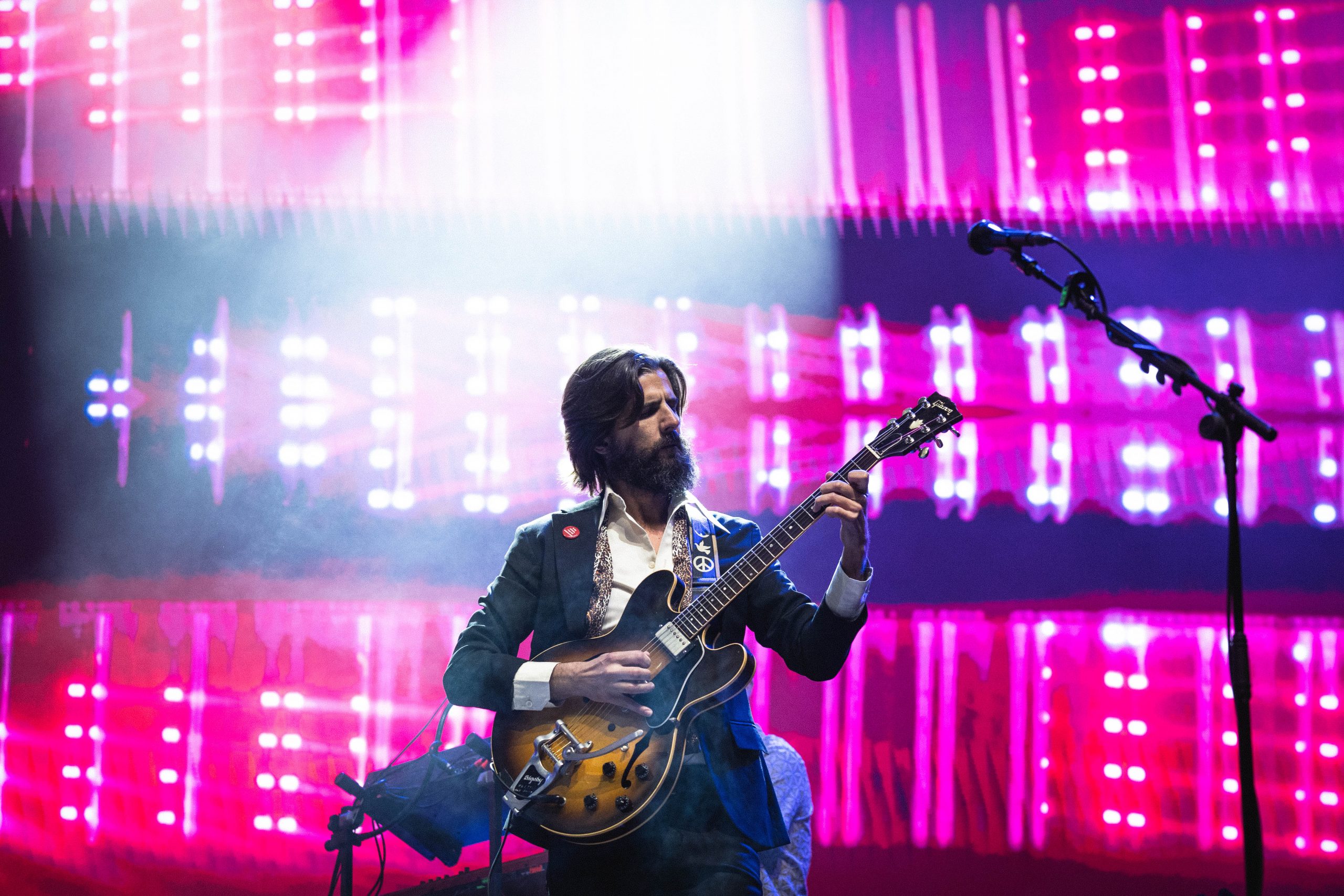 Como ya he tratado antes, y sobre todo en este segundo día, he llegado a la conclusión de que en un festival no es posible llegar a todos los conciertos en primera fila. La experiencia consiste en dejarse llevar por los fondos, incluso me parece una muy buena oportunidad para ir a ver a esos artistas que igual tienes ganas de ver pero por alguna razón no te atreves a hacerlo en salas. Es un momento perfecto para descubrir música y apuntarte todas esas canciones que no conocías. En mi caso, este día fue el que más tarde llegué, y Guitarricadelafuente es ese artista que tenía ganas de ver en vivo pero que al final nunca iba a verle. Empezaba un poco más tarde y pude disfrutar de su música mientras el sol caía poco a poco, al ritmo de ‘Sixtinain‘.