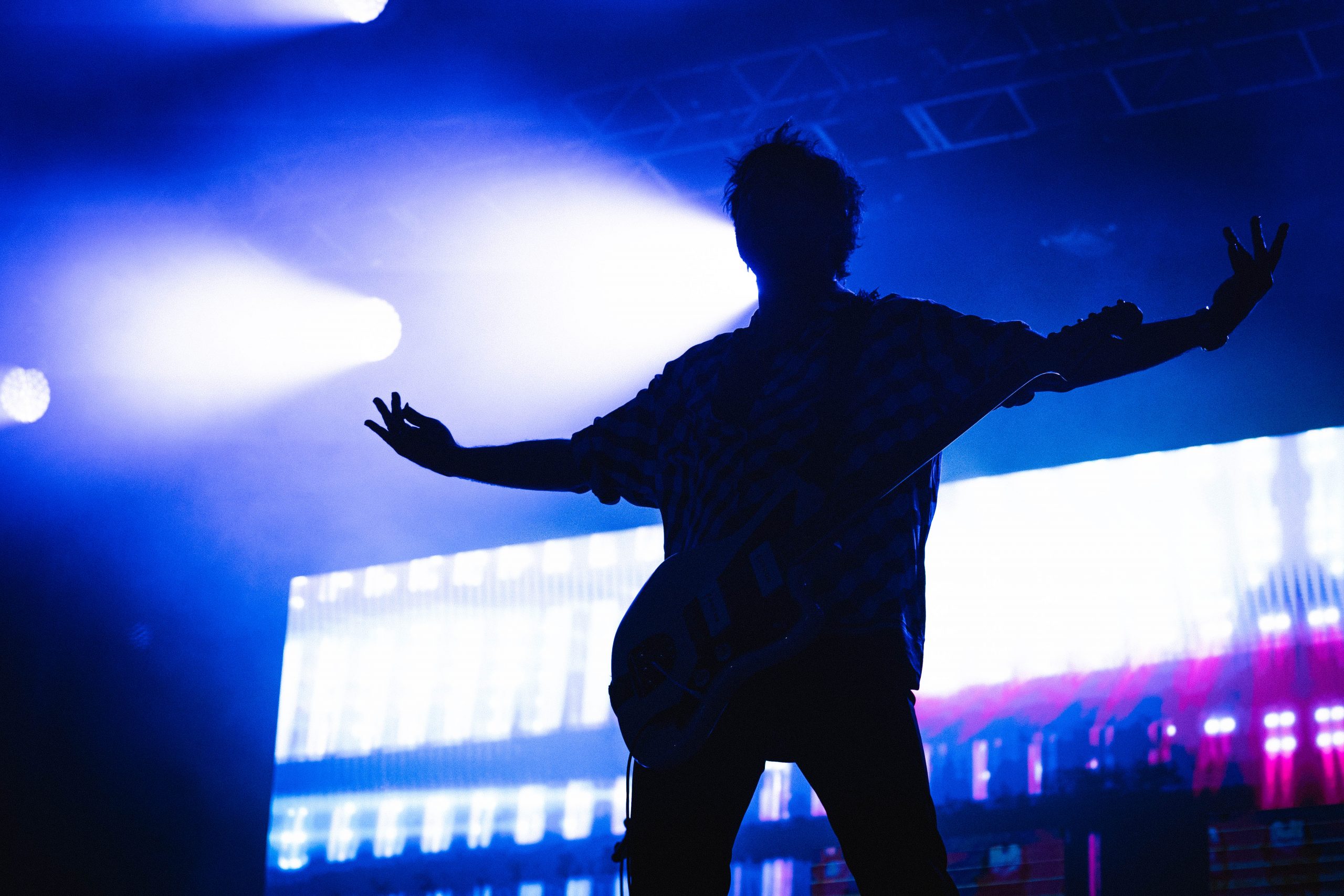Por último, para cerrar el SanSan Festival 2023 teníamos a varios grupos que cambian de narrativa, capaces de mover bastantes masas. En primer lugar, otro de los cabeza de cartel más importantes, Leiva. Aquí es donde realmente fui consciente de toda la gente que había en el festival, porque estaba todo el mundo viéndole y yo soy muy pequeña. Evidentemente fue difícil coger buen sitio, y en mi caso abandoné antes de lo previsto el escenario principal teniendo en cuenta que estaba bastante lejos, donde el sonido igual se perdía más de lo que me gustaría y las pantallas estuvieron apagadas gran parte del concierto. Me dio pena, pero era muy complicado disfrutar realmente. El resto, una vez terminado rápido el publico se movería ligeramente a la derecha para ver otro de los grandes: Carlos Sadness, que presentaba su clásica música tropical y que nos confirmó algo que ya sabíamos: sigue siendo capaz de mover masas, aunque sea a las dos de la mañana.